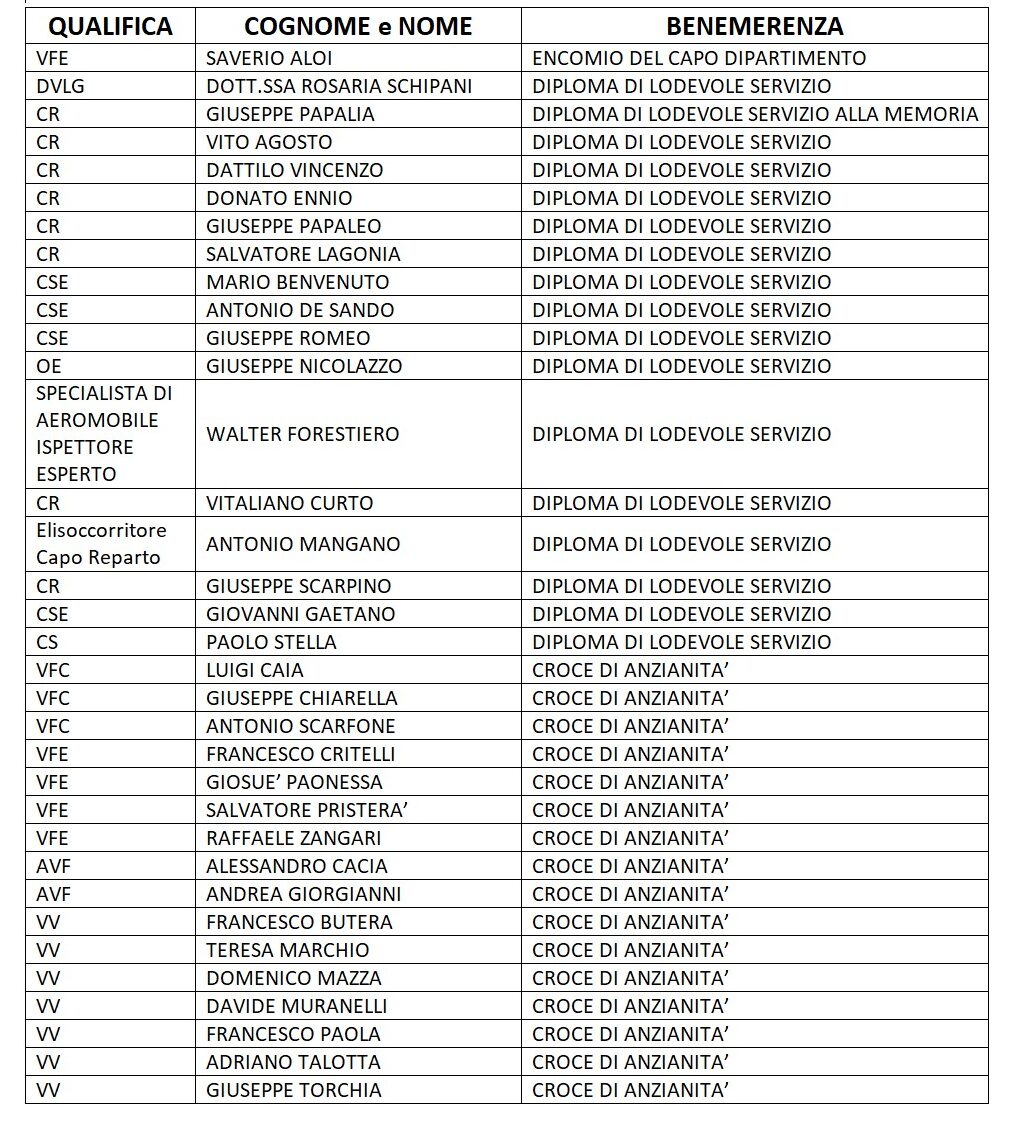 La cerimonia si è conclusa con la consegna di un Encomio del Capo Dipartimento a un Vigile del Fuoco che, libero dal servizio, nell’estate 2025 ha salvato la vita a una bambina praticando manovre di rianimazione cardiopolmonare sulla spiaggia di Roccelletta, nel comune di Borgia. Sono stati inoltre conferiti 17 diplomi di lodevole servizio al personale collocato in quiescenza nel 2025 e 16 Croci di anzianità al personale che ha maturato 15 anni di servizio.