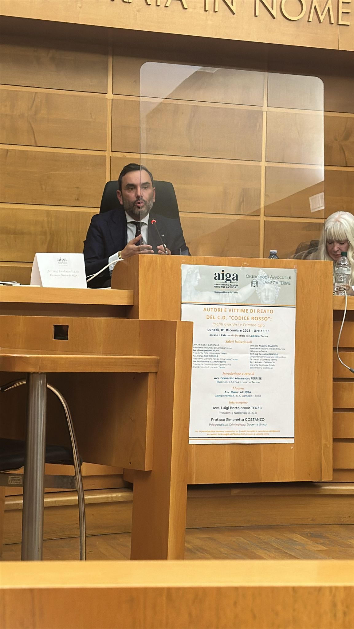 Un dato che ribalta lo stereotipo del “nemico esterno” e illumina il dramma delle violenze domestiche, spesso annunciate da segnali sottovalutati e da campanelli di allarme inascoltati. La giornata si è conclusa con un riconoscimento simbolico da parte della Sezione Aiga di Lamezia Terme che ha conferito al Presidente Nazionale AIGA l’Avv. Luigi Bartolomeo Terzo il titolo di socio d’onore, per l’impegno profuso in questi anni e per la vicinanza da sempre dimostrata alla sezione, non a caso scelta proprio come prima tappa ufficiale del proprio mandato.