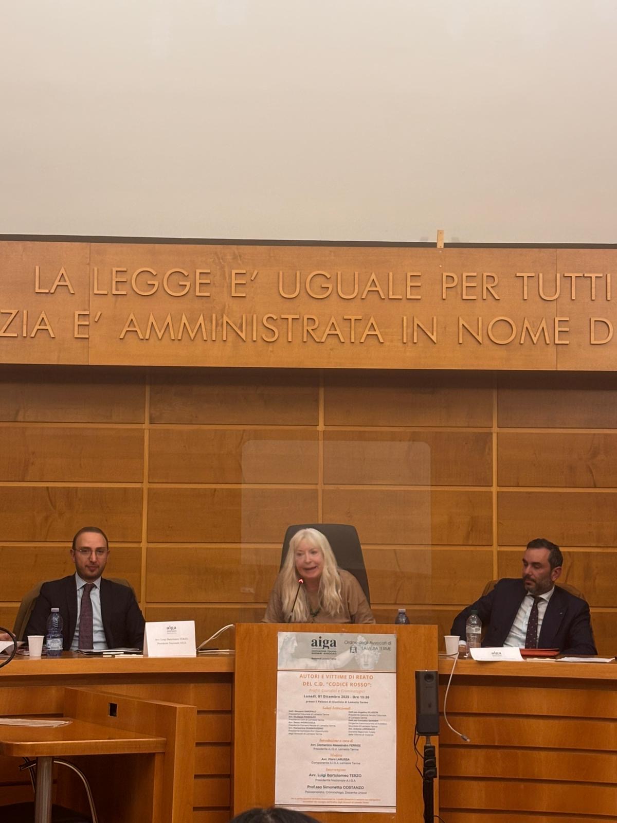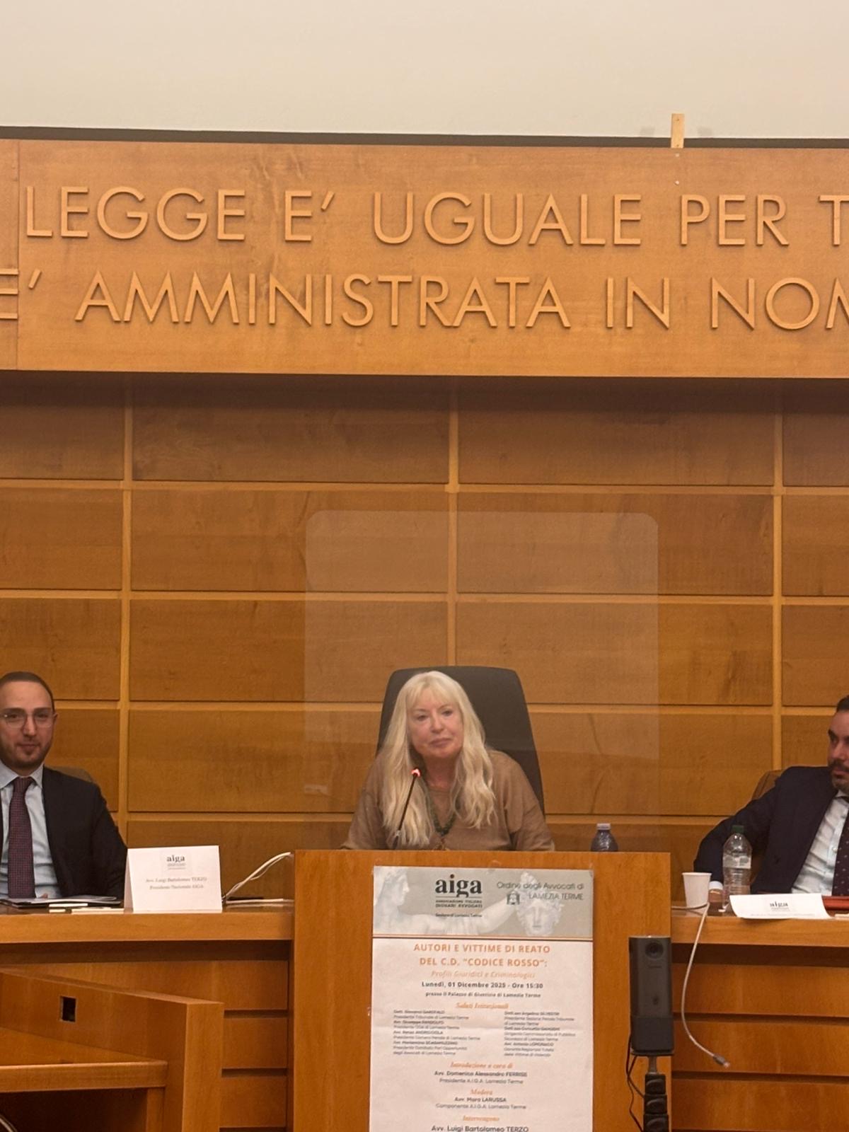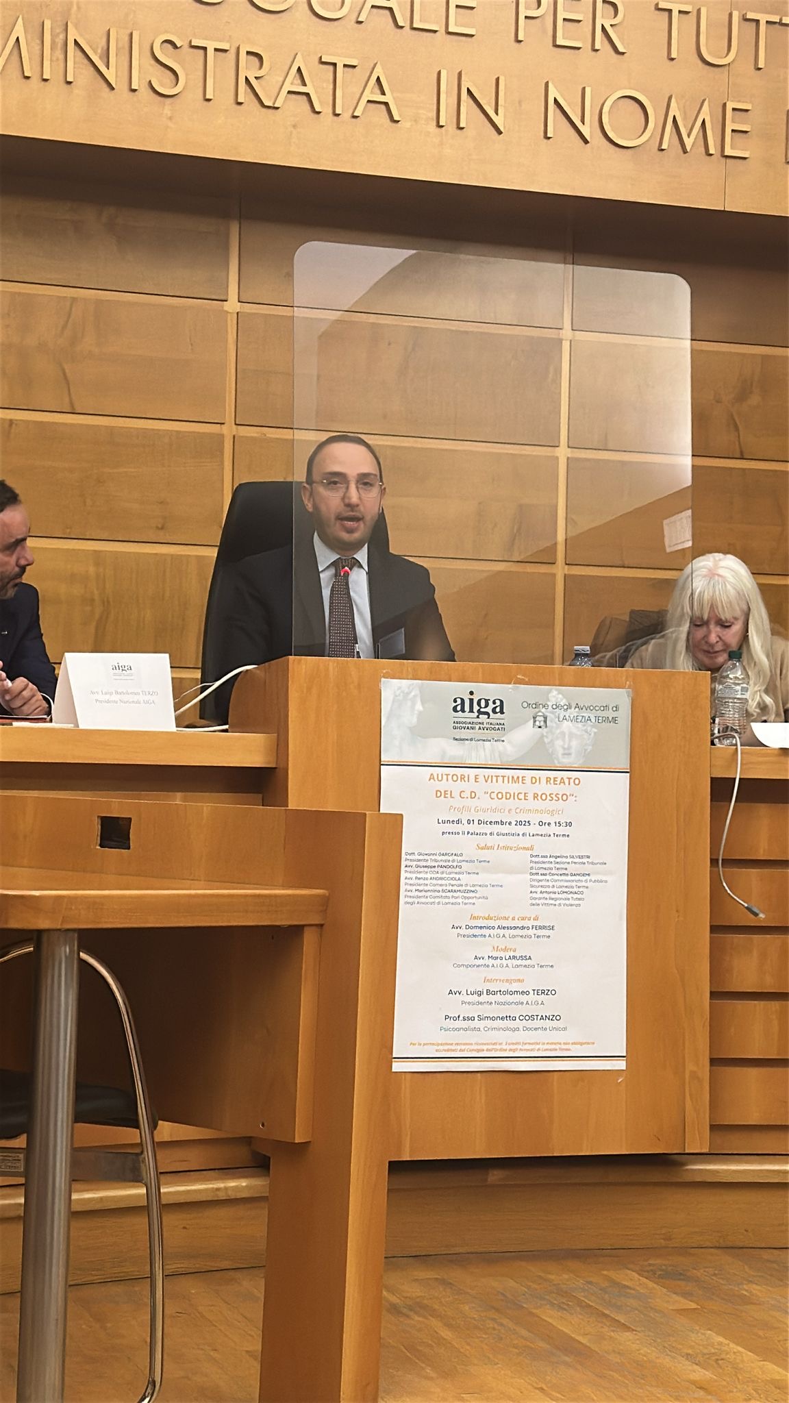 A introdurre i lavori l’Avv. Domenico Alessandro Ferrise, Presidente della Sezione AIGA Lamezia Terme, che ha evidenziato l’urgenza di una riflessione condivisa sulle criticità applicative del Codice Rosso e sulla risposta del sistema giudiziario. Protagonisti della sessione tecnica l’Avv. Luigi Bartolomeo Terzo, neoeletto Presidente Nazionale AIGA, e la Prof.ssa Simonetta Costanzo, psicoanalista, criminologa e docente Unical.
