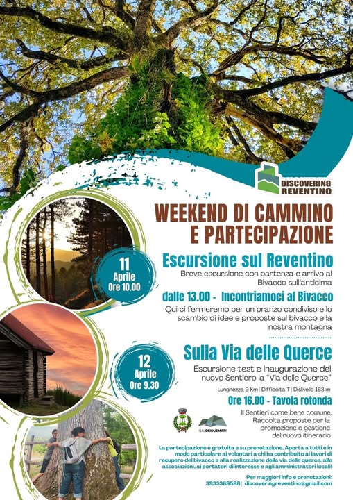 Il territorio del Reventino si prepara ad accogliere un fine settimana all’insegna della natura, della partecipazione e della valorizzazione del patrimonio locale. L’11 e 12 aprile si svolgerà infatti il “Weekend di Cammino e Partecipazione”, un’iniziativa promossa dall’associazione Discovering Reventino insieme all’Amministrazione Comunale, con l’obiettivo di riscoprire e prendersi cura della montagna attraverso esperienze condivise.