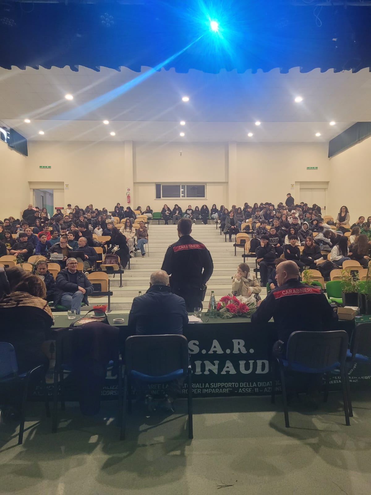 Si è svolto presso il Polo Tecnico Professionale “Luigi Einaudi” di Lamezia Terme l’incontro dal titolo “Un albero per il futuro”, promosso in collaborazione con i Carabinieri Forestali nell’ambito del progetto nazionale di educazione ambientale. L’iniziativa, articolata in un seminario informativo e in un’attività laboratoriale, ha coinvolto gli studenti del biennio, offrendo loro un’importante occasione di riflessione sui temi del rispetto dell’ambiente e della legalità. L’evento si è tenuto tra l’aula magna e il cortile dell’Istituto, sotto il coordinamento della docente referente, prof.ssa Monica Fazio.