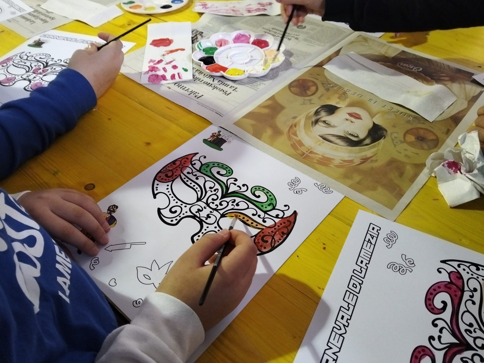Fondamentale, nel percorso dei più piccoli, è stata anche l’assistenza di straordinarie figure di riferimento: Patrizia, Linda, Aurora ed Elisa, che con dedizione e sensibilità hanno guidato il laboratorio, supportando i bambini con colori, acqua, materiali e, soprattutto, con attenzione costante a ogni esigenza.