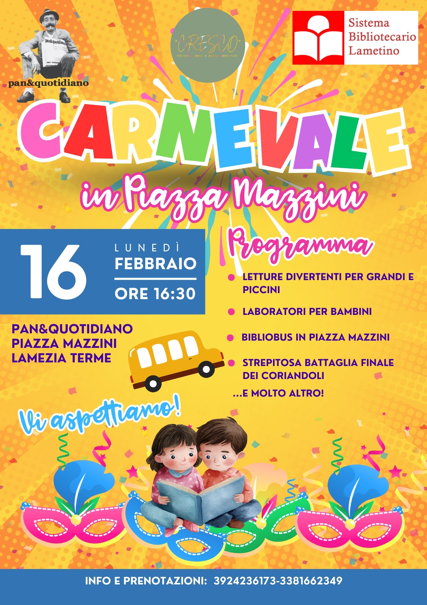 Carnevale in Piazza Mazzini con Sistema Bibliotecario e Pan&Quotidiano