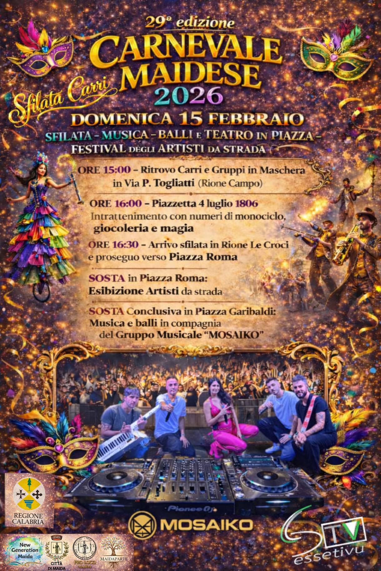 Maida si prepara a vivere giorni di festa, colore e partecipazione con il Carnevale Maidese 2026, in programma dal 14 al 17 febbraio. Un appuntamento atteso che arriva in un momento simbolico per la comunità, che celebra con orgoglio il titolo di Città e sceglie di farlo attraverso una manifestazione capace di unire tradizione, creatività e coinvolgimento collettivo.