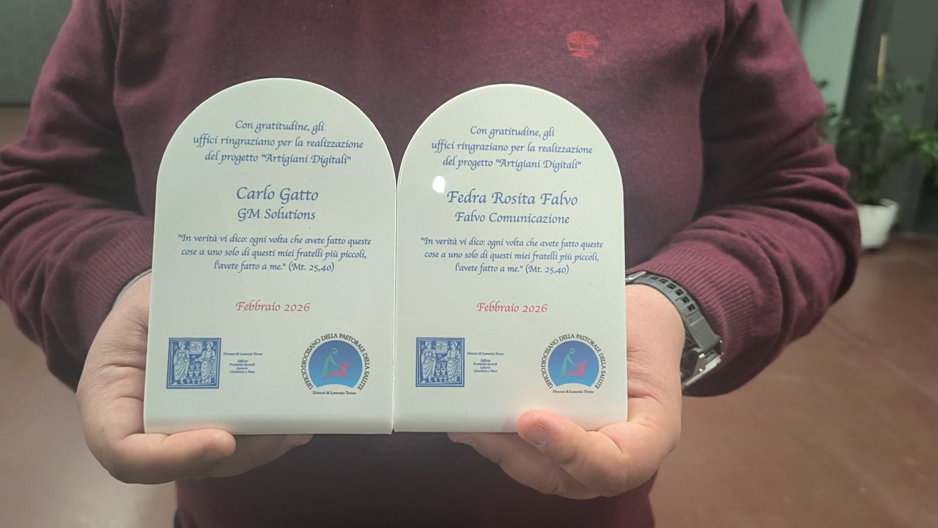 Durante la serata conclusiva sono state premiate le aziende partner Falvo Comunicazione, rappresentata da Fedra Falvo, e GM Solutions, rappresentata da Carlo Gatto, per il contributo professionale e umano offerto lungo tutto il percorso formativo. Grazie al loro supporto, i ragazzi hanno potuto affrontare con successo gli esami e acquisire competenze tecniche fondamentali.