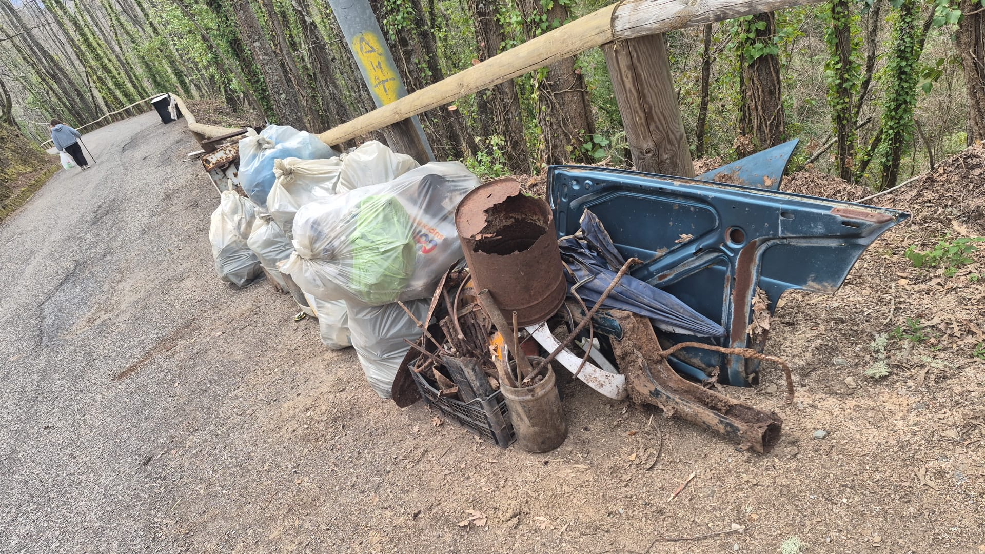 Questa volta a fare da “spazzini” sono stati i volontari dell’associazione SìAmo Adami, di giovane costituzione, che, di buona lena, sono riusciti a tirar fuori dai bei boschi che costeggiano una delle strade interne alla piccola frazione del paese ai piedi del Reventino, una quantità notevole di rifiuti solidi dalla sorprendente varietà: dal pneumatico, al pezzo di lamiera d’auto, al pc vintage, a ferraglia di vari tipi e recipienti di ogni genere.