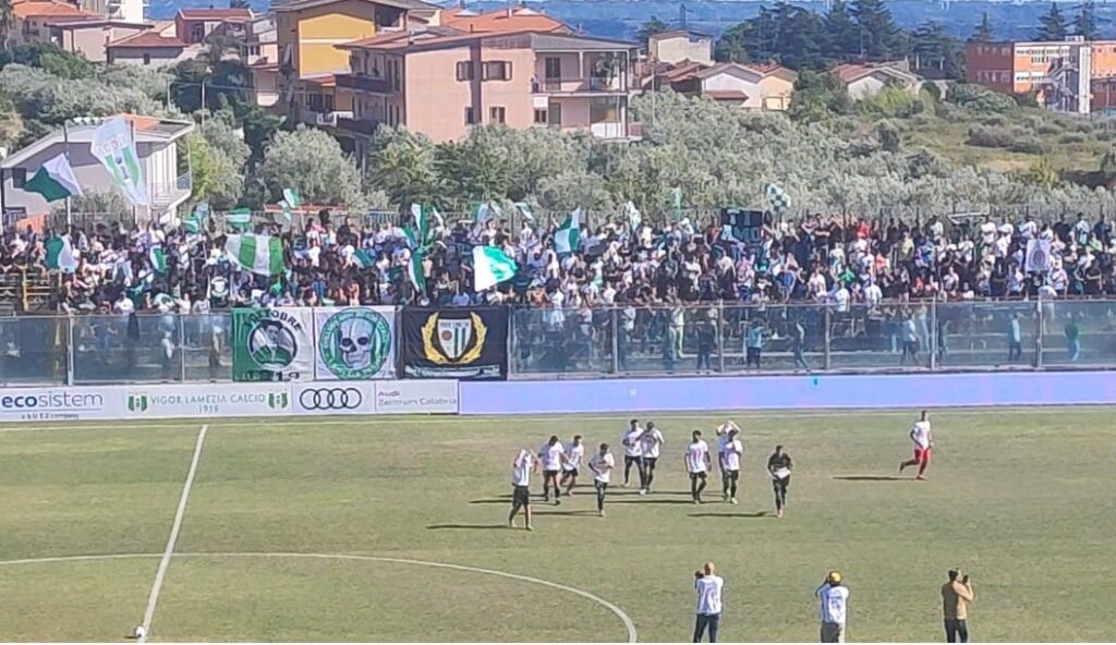 Il derby lametino tra Vigor Lamezia e Sambiase, andato in scena oggi pomeriggio alle ore 15 allo Stadio Guido D’Ippolito, si è chiuso senza vincitori né vinti. Novanta minuti intensi, equilibrati e ricchi di agonismo, ma poveri di emozioni sotto porta: il risultato finale è un 0-0 che lascia intatto l’equilibrio cittadino.