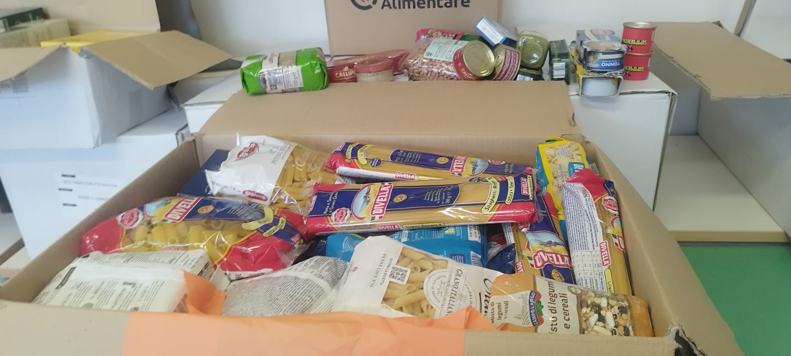 Le scatole per la raccolta dei viveri da donare