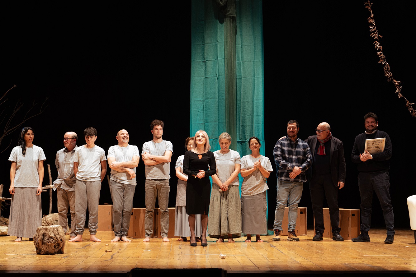 La sofferenza dei personaggi non è solo fisica, legata alla fame o al calore estremo, ma soprattutto esistenziale. In “Calùra” si muore di solitudine e di mancanza di comunicazione, un silenzio che logora più di ogni malattia. La messa in scena ha restituito questa tensione tragica grazie alle interpretazioni straordinariamente intense degli attori Eugenio Nicolazzo, Walter Vasta, Gabriele Parisi, Vincenzo Muraca, Anna Broccardo, Angela Gaetano, Fedora Cacciatore e Arianna Perri. Le loro voci, intrecciate al suggestivo sussurro sonoro dei musicisti Vittorio Viscomi e Fabio Tropea, hanno dato corpo a un’umanità ridotta all’essenziale che, nel finale, esplode in un atto estremo di speranza teso a misurare il confine tra l’inferno della “calùra” e il ritorno alla normalità.