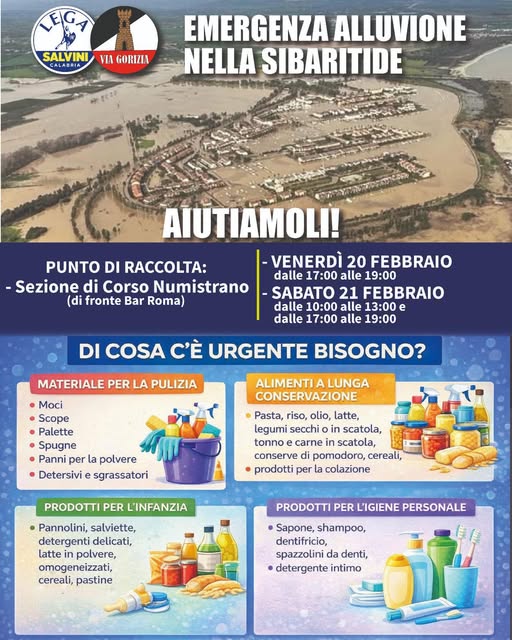 “La Sibaritide è stata duramente colpita dall’alluvione: famiglie, attività, territori messi in ginocchio. Ora è il momento della solidarietà concreta”, aggiungono dalla Lega Lamezia, invitando tutti a partecipare. La Calabria si rialza grazie all’impegno di chi non si arrende: “Forza Calabria, un popolo che non molla!”