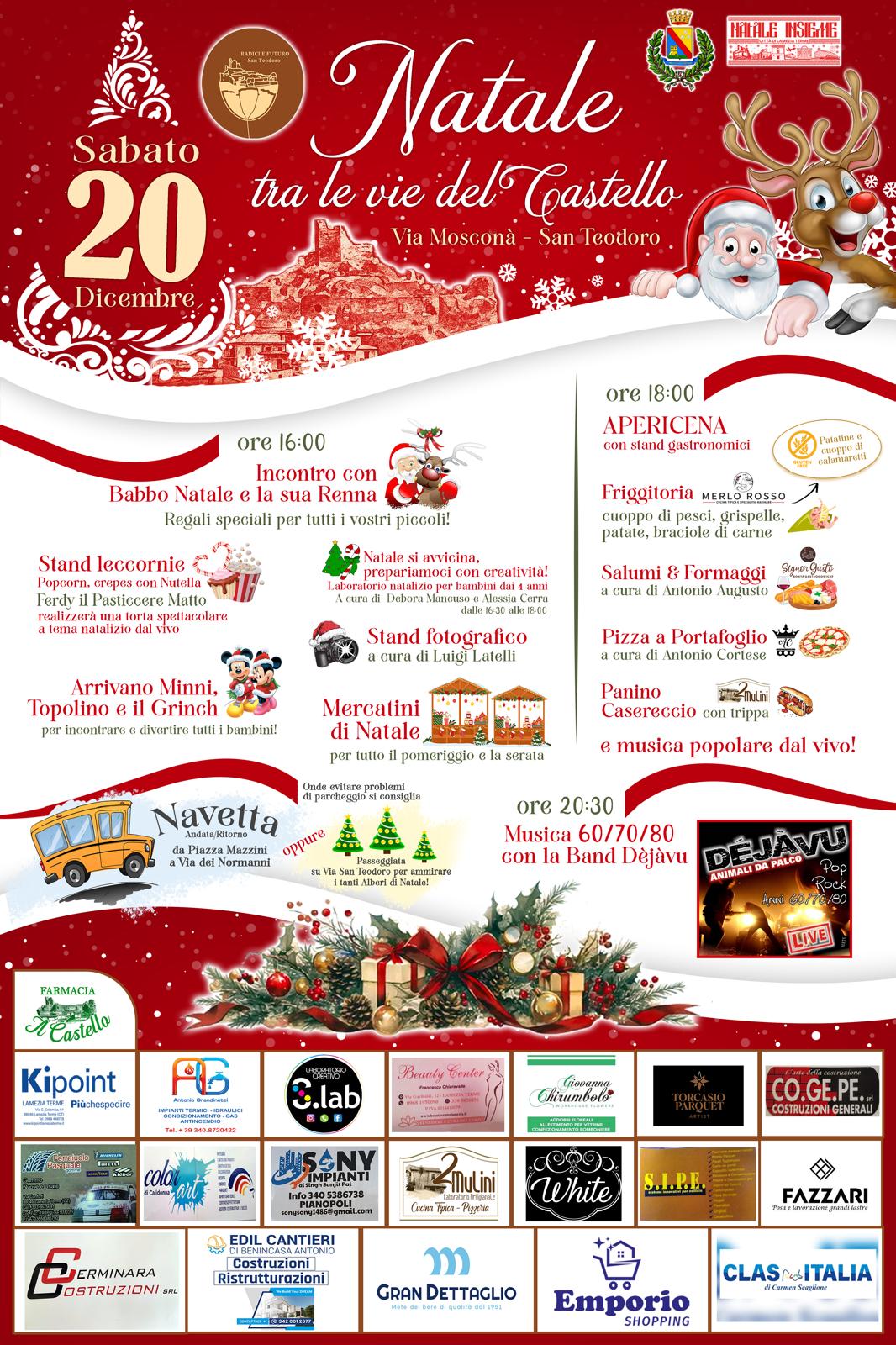 Sabato 20 dicembre, San Teodoro si prepara ad accendersi di luci e allegria con l’evento “Natale tra le vie del Castello”, una festa che porterà in via Mosconà e nelle strade circostanti tutta la magia delle festività.