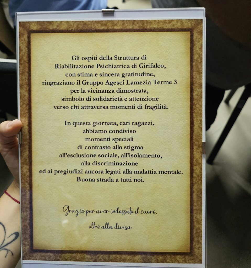 Questa mattina, i ragazzi del gruppo AGESCI Lamezia Terme 3 hanno fatto il loro ingresso nella Struttura Residenziale Psichiatrica di Girifalco, accolti in un ambiente dove la cura e la comprensione sono al centro dell’esperienza.