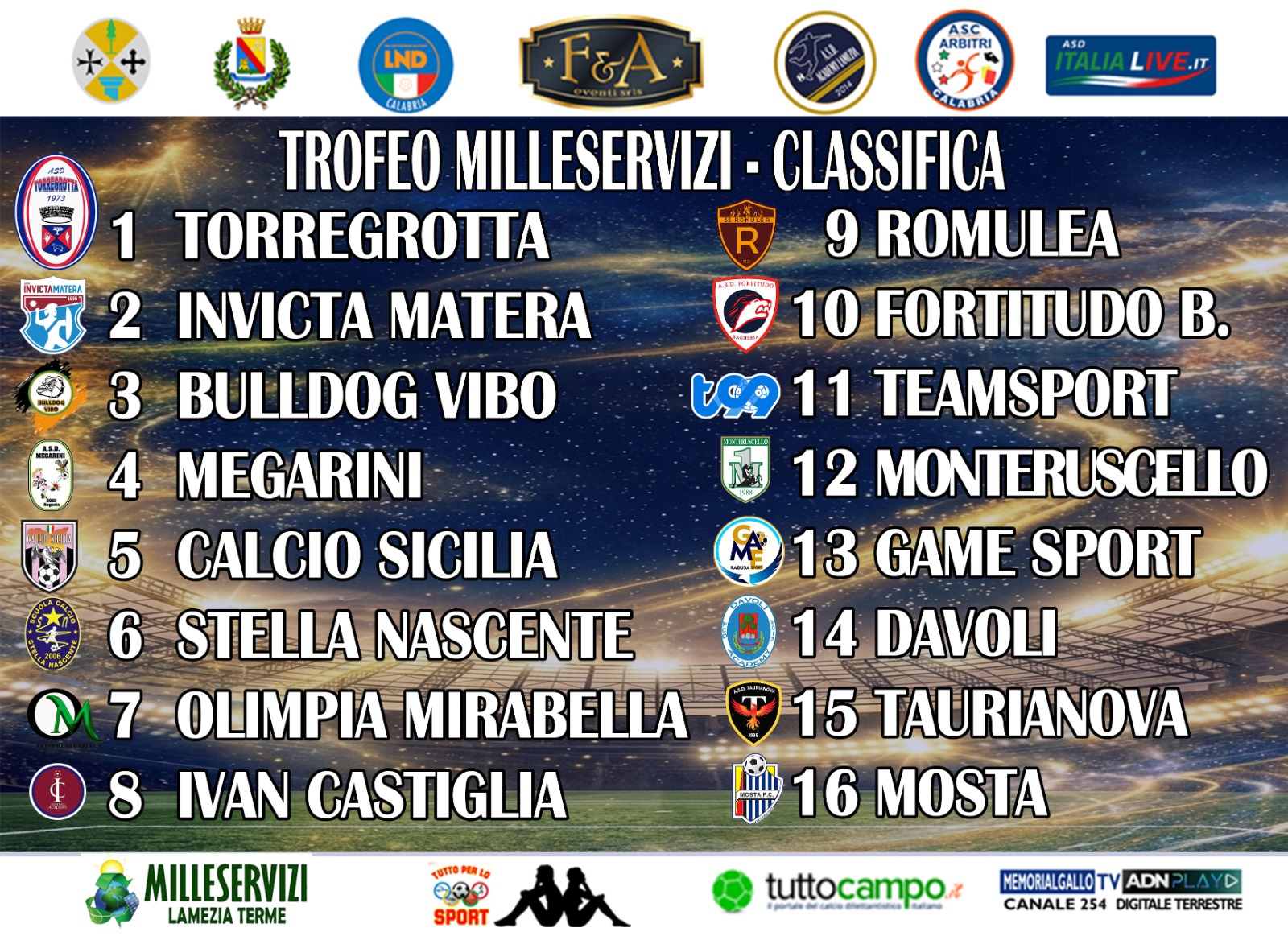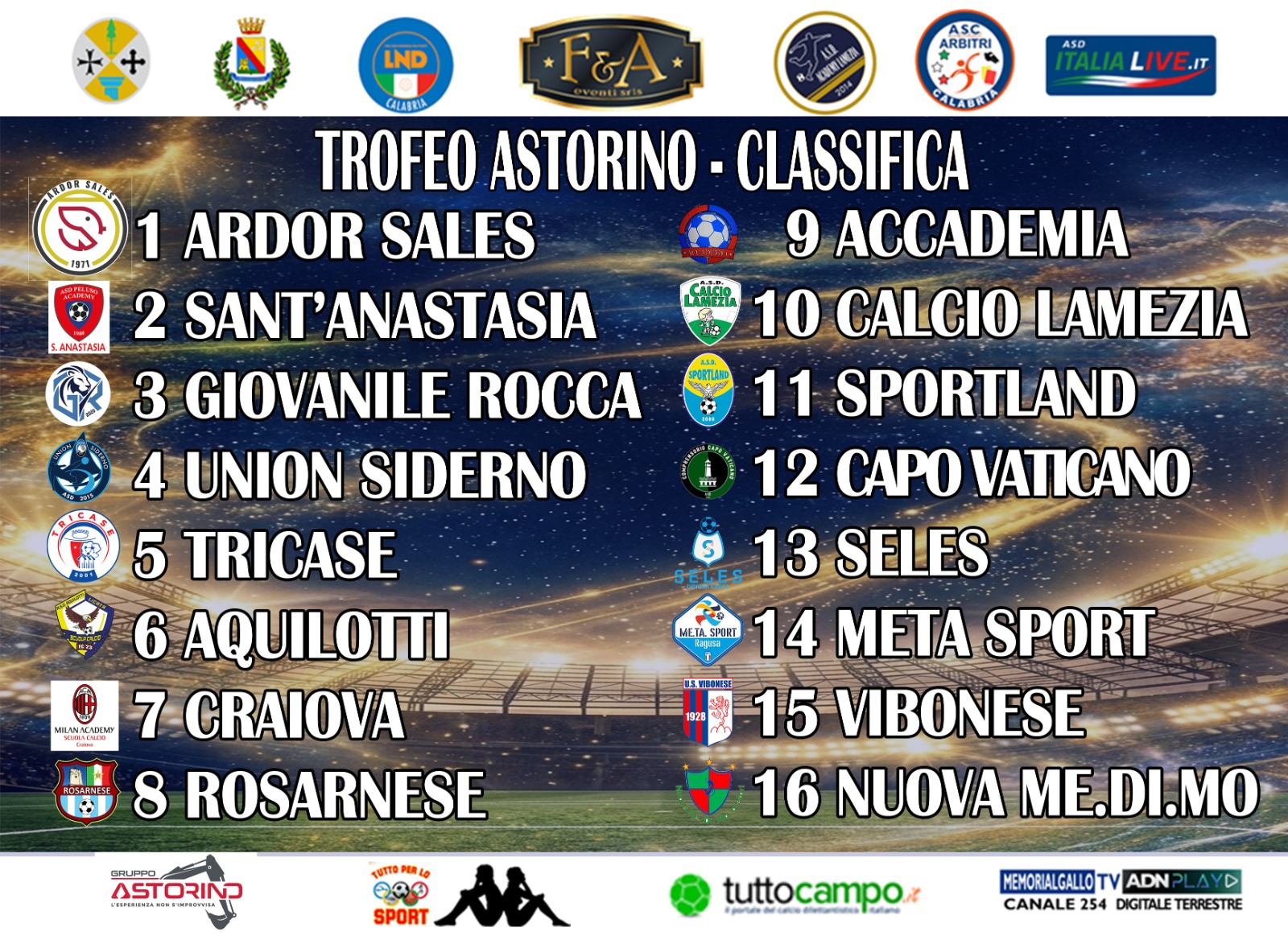 “Si chiude un’edizione bellissima del Memorial Pasquale Gallo – commenta Angelo Aiello della F&A Eventi -. Passare da 64 a 80 squadre con gare su tre campi invece che su due, non era facile. Ci siamo riusciti grazie all’impegno del nostro staff che ha lavorato instancabilmente per quattro giorni per non far mancare niente a nessuno e garantire sempre puntualità e precisione. Devo ringraziarli tutti, uno per uno. Ma voglio ringraziare anche le 80 squadre partecipanti che hanno collaborato con noi e regalato uno spettacolo incredibile per le vie Lamezia, invase da bambini festanti. Grazie ad ASD Italia Live per il supporto organizzativo e a tutti i partners dell’evento. Non voglio dimenticare gli arbitri che ogni anno ci danno una mano. Infine, un ringraziamento alla Presidenza Consiglio Regionale della Calabria e all’Amministrazione Comunale che ci è stata vicina in ogni momento del Torneo. Senza la partecipazione di tutti non avremmo potuto realizzare tutto questo e non potremmo con orgoglio guardare alla prossima edizione del Memorial, che sarà la decima, e per la quale stiamo già lavorando progettando alcune importanti novità”.