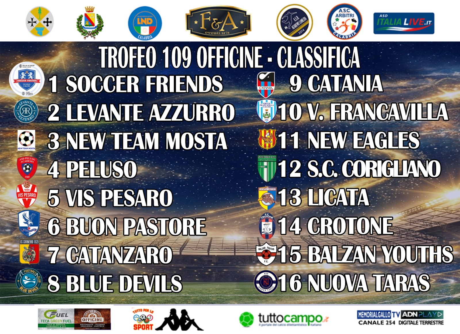 Il Torneo, articolatosi inizialmente in 16 gironi da 5 squadre ciascuno, ha visto poi le diverse compagini gareggiare per distinti trofei. Se la vittoria finale, quella del Trofeo SICMA, è andata alla Fiorentina, negli altri hanno trionfato la Virtus Juve Stabia (Trofeo SAF), la Soccer Friends (Trofeo 109Officine), il Torregrotta (Trofeo Milleservizi) e l’Ardor Sales (Trofeo Astorino).