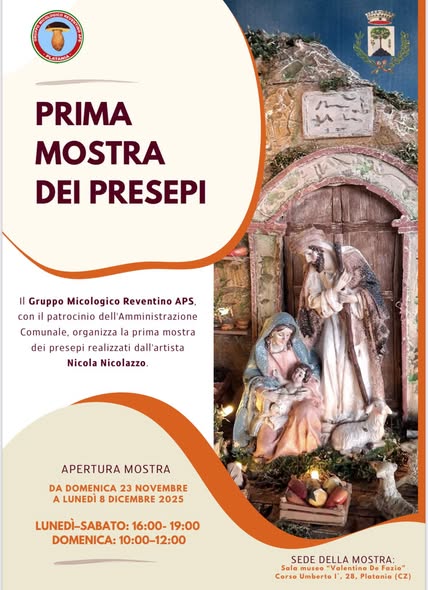 A Platania si inaugura un evento che unisce arte, identità locale e atmosfera natalizia: la Prima Mostra dei Presepi, organizzata dal Gruppo Micologico Reventino APS con il patrocinio dell’Amministrazione Comunale. La rassegna intende valorizzare l’abilità manuale e l’immaginazione dell’artista Nicola Nicolazzo, proponendo al pubblico un viaggio attraverso simboli, ricordi e spiritualità che fanno del presepe uno dei più autentici elementi della cultura popolare.