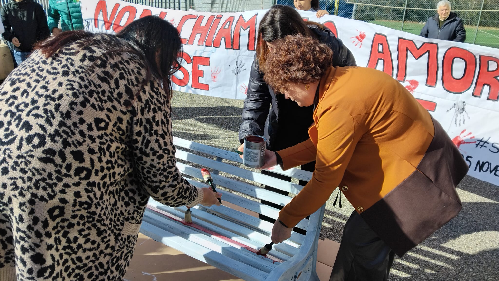 Al termine della manifestazione, sotto il bellissimo sole di inizio dicembre, Giusy insieme agli studenti, alla dirigente e, a seguire, a tutti gli attori della bellissima giornata dedicata al sociale, hanno dato il simbolico colore rosso alla panchina simbolo del rigetto verso ogni forma di violenza.